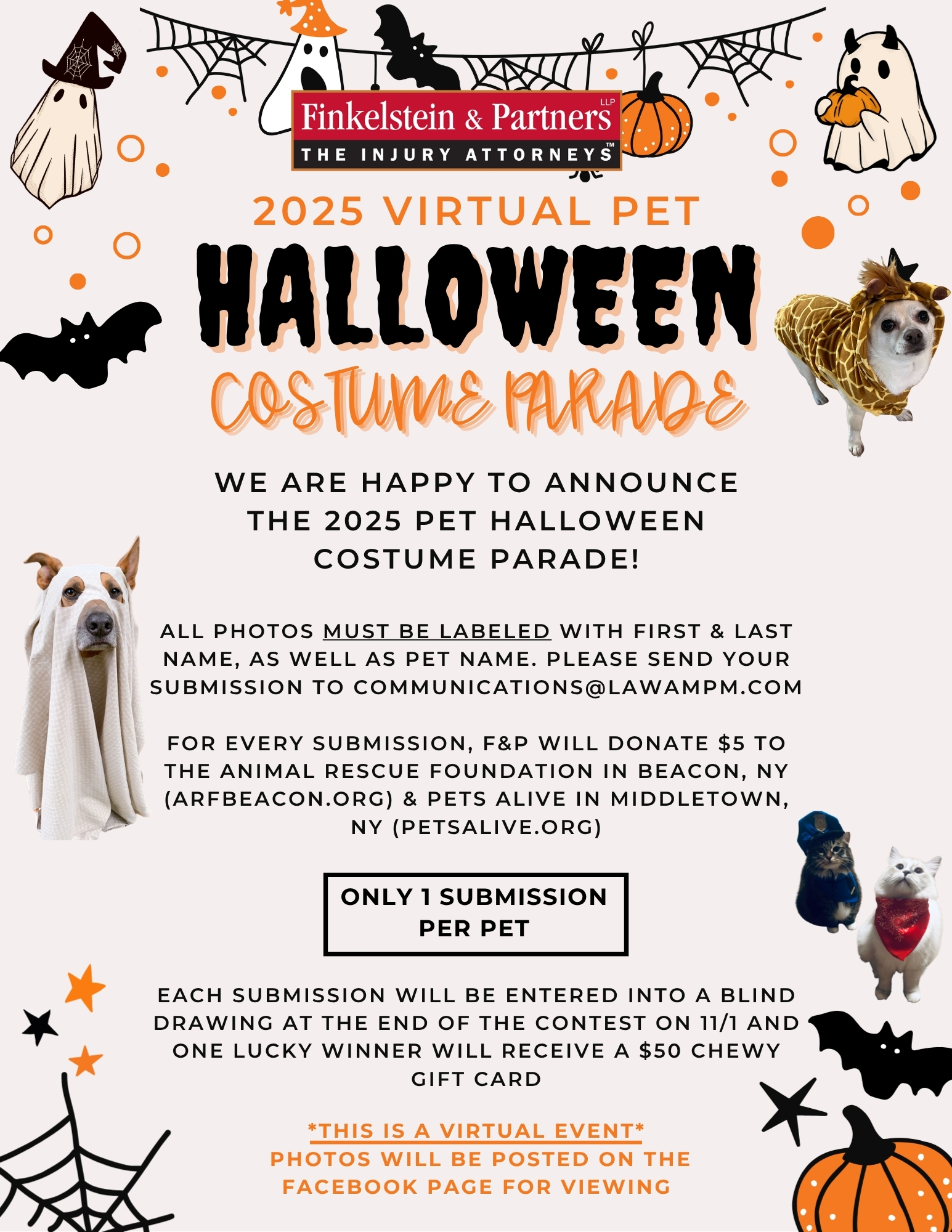 As one of the main sponsors of this fundraising event, Finkelstein & Partners is proud to support the efforts of the Animal Rescue Fund (ARF) of Beacon. ARF is a federal, non-profit, no-kill, 100% volunteer-run animal rescue center located in beacon, NY. Since 1986, ARF has been dedicated to rescuing, rehabilitating, sheltering, and finding loving homes for thousands of cats and dogs. Their volunteers are driven by a profound love for animals and a mission to improve the lives of the pets in their care. Even animals that aren’t adopted experience unwavering love and care, creating a forever home right at ARF.